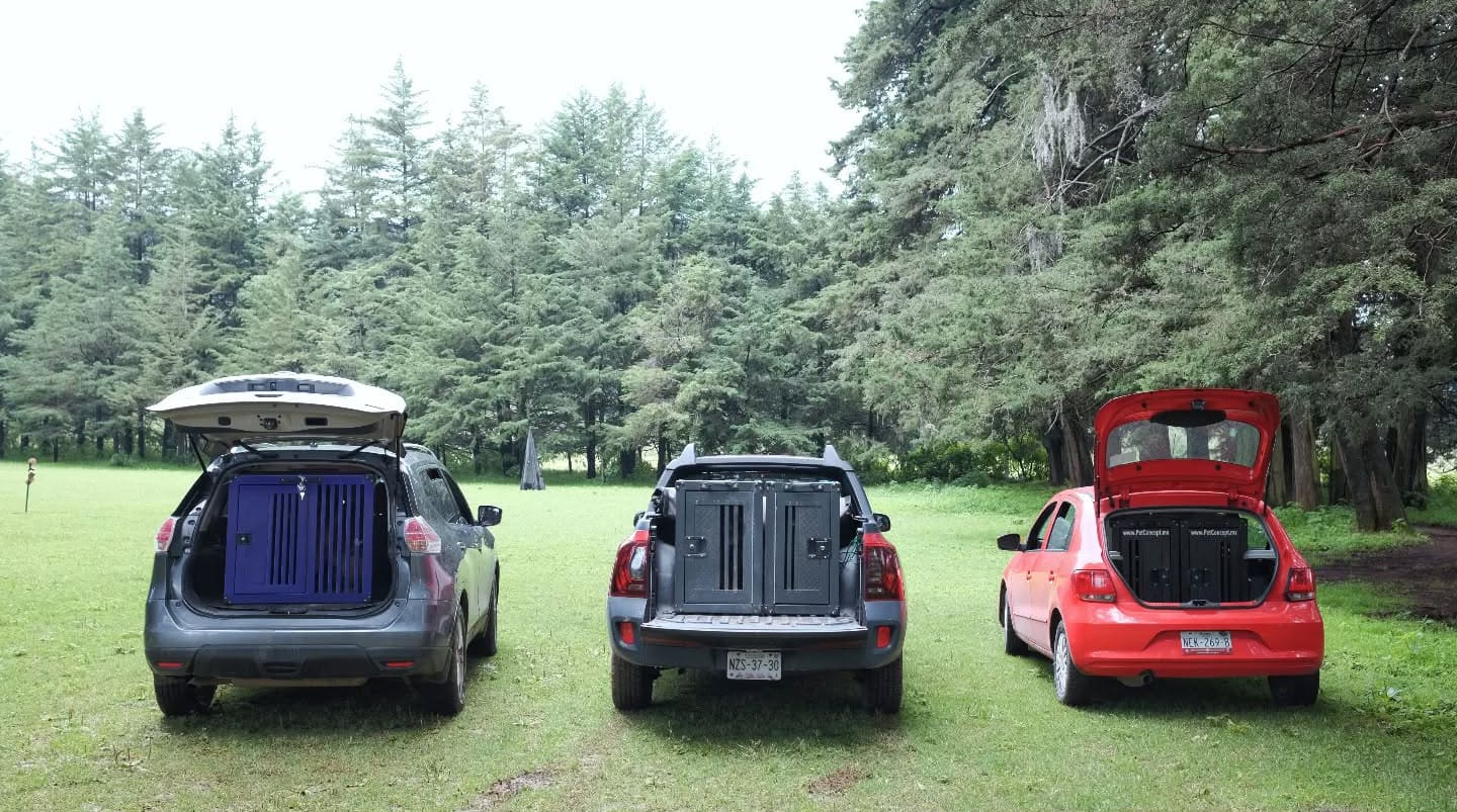 Construidas en lámina de acero con refuerzos y ventilación perimetral, nuestras transportadoras son más seguras y durables que las de plástico común. Ofrecen excelente flujo de aire, puertas con cerradura, fácil limpieza (piso antiderrapante) y fijación segura al vehículo. Están diseñadas para caber en prácticamente cualquier auto (SUV, sedán o pickup), maximizando espacio sin sacrificar comodidad del perro.